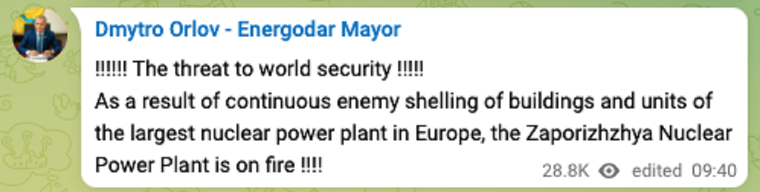 Europe Russian army is firing from all sides upon Zaporizhzhia NPP, the largest nuclear power plant in Europe. Fire has already broke out. If it blows up, it will be 10 times larger than Chornobyl!